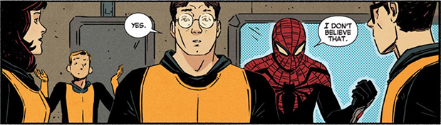 The Hulk has finished a mission, and puppies are being brought in to calm the Hulk and turn him back into Dr Banner. After recovering from his transformation, he is immediately flown to Empire State University to meet Spiderman. Dr Banner is acquainted with Dr Jude, but can’t believe he is seeing young X-Men. Hank explains that they are the original teenaged X-Men who have time travelled from the past, and they suspect that Doctor Octopus had followed them through. Spiderman is miffed when Dr Banner deems time travel “plausible”. Before they get to work, Dr Banner wonders why they aren’t making use of S.H.I.E.L.D.’s facilities. The X-Men and Spiderman wanted to keep this situation under wraps, each party having their own agenda. Dr Banner agrees to help them, but first, they needed to fix up some old equipment.