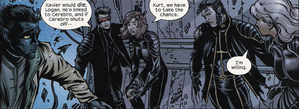 Magneto and Mystique carry on their search as Jean confronts Cyclops. Cyclops had been mind-controlled to attack Jean. Using her telekinesis against his optic blasts, they cause an explosion of power, damaging the dam. Suddenly, all the mutants feel mind-seering pain as Xavier proceeds to use Cerebro as instructed. Magneto manages to stop Cerebro and reprogrammes Cerebro to attack humans instead.